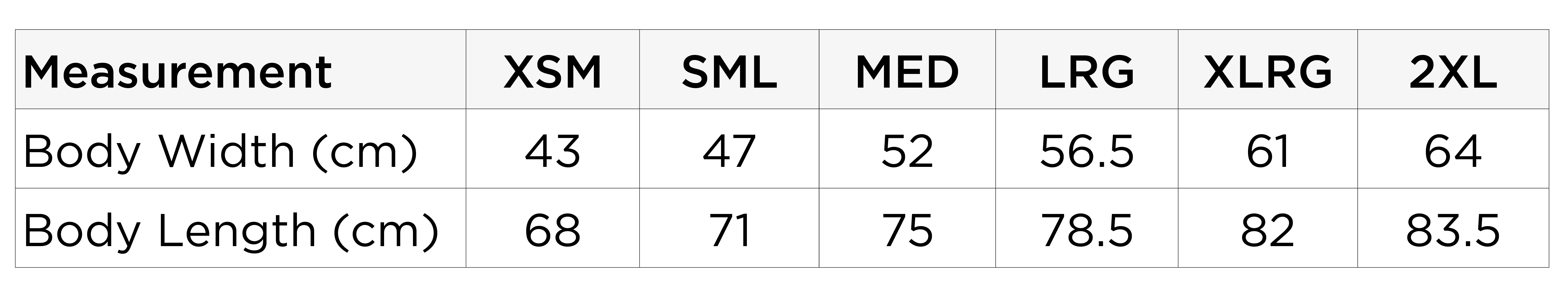 Available Sizes: XSM - 2XL